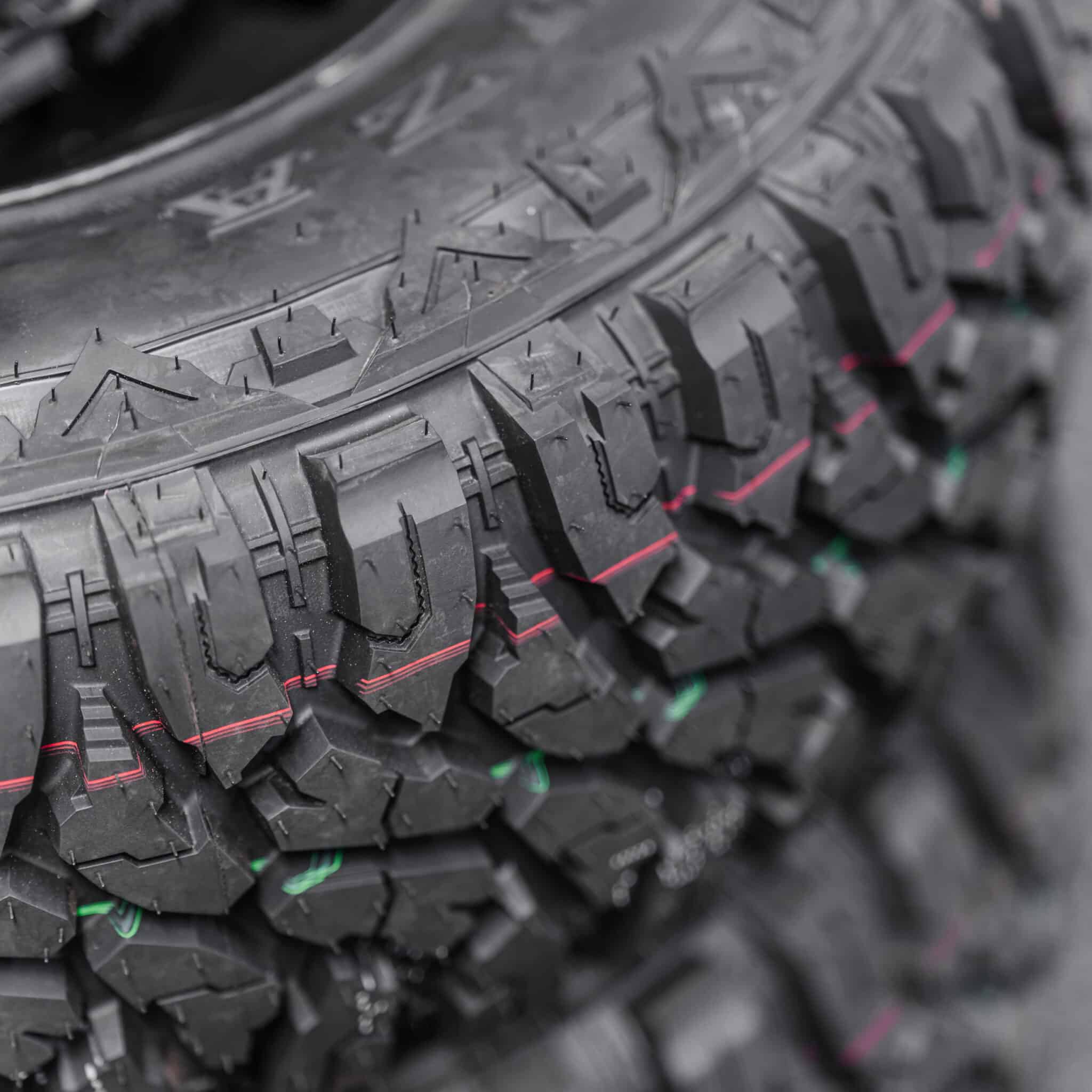 Uni directional tread design-with large shoulder blocks and tread center blocks are for maximum traction in muddy conditions and easy self-cleaning. Unique shoulder blocks-enhance traction in muddy conditions and snowy conditions. Shoulder design-for minimizing cut injury under muddy conditions.