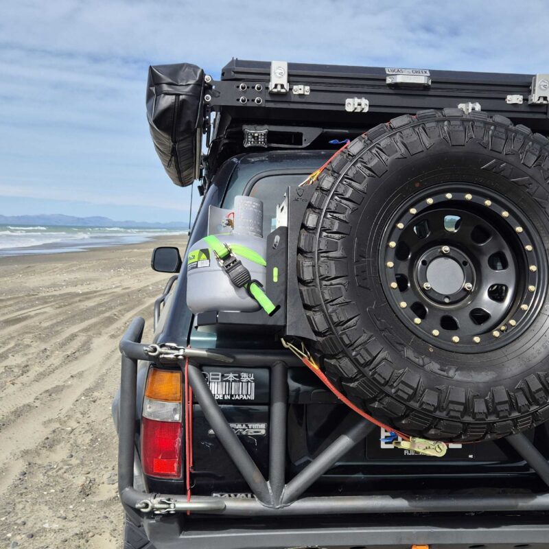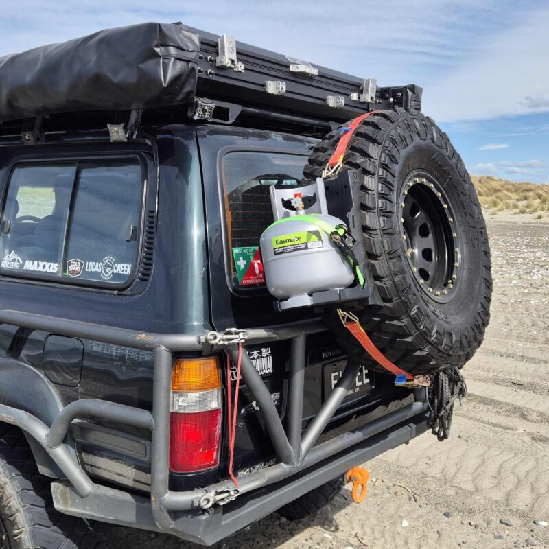 Gas bottle mount designed to be attached to the rear spare wheel