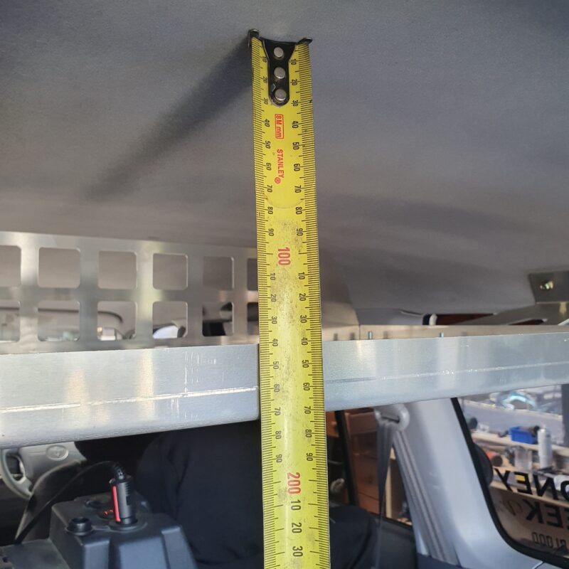 Size of the shelf is 1100mm wide by 500mm deep. Approx. 170mm from the roof.